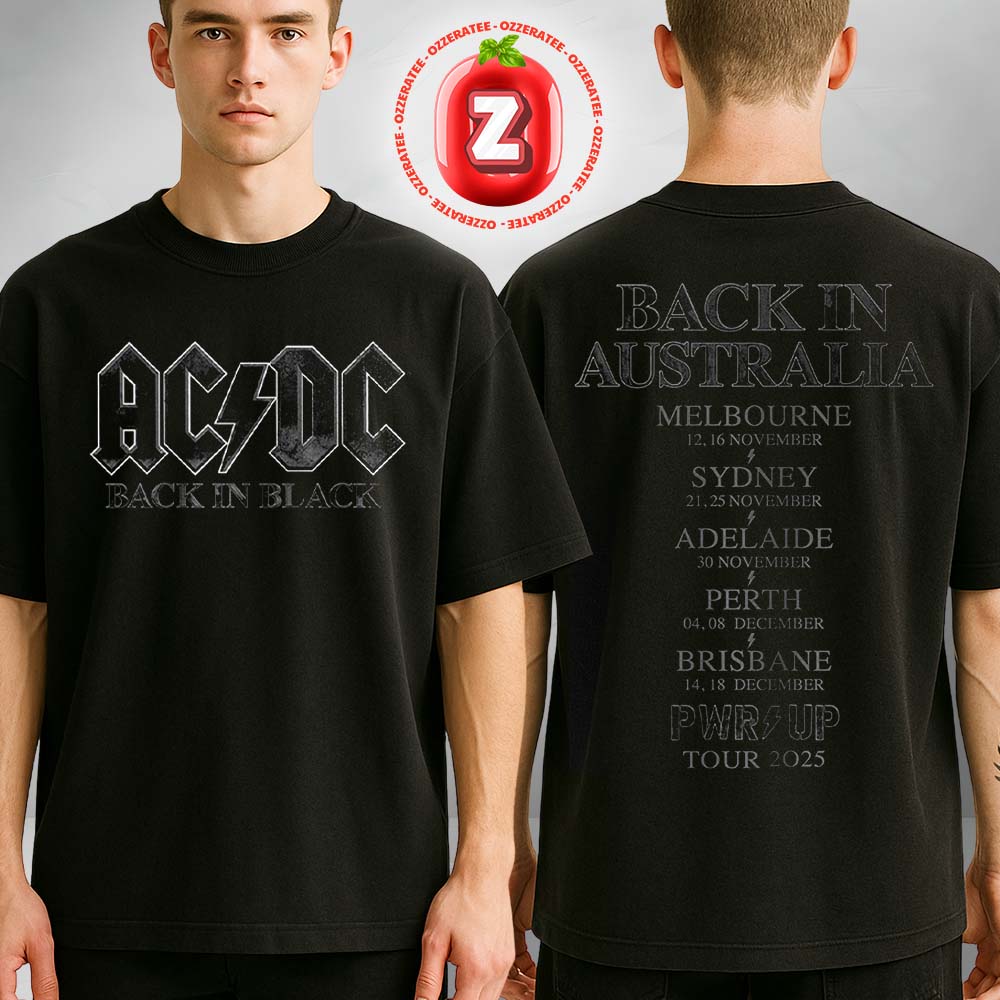 Ozzeratee: About ACDC Back In Black PWR UP Tour 2025 Black In Australia Tour Two Sides Unisex T-Shirt