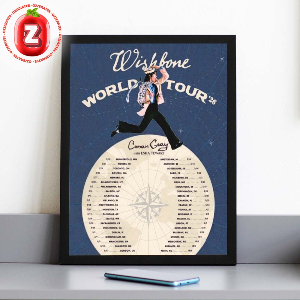 Conan Gray Wishbone World Tour 2026 Poster Concert Dates Map Art Print Home Decor Poster Canvas Features:
