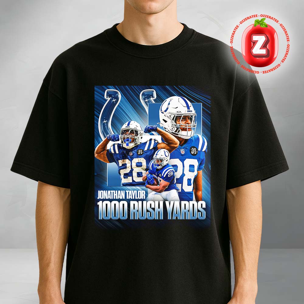Jonathan Taylor 1000 Rush Yards Milestone Poster Indianapolis Colts 2025 NFL Artwork Unisex T-Shirt Features: