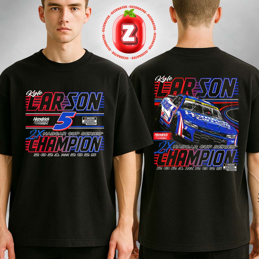 Kyle Larson Hendrick Motorsports Team Collection Two-Time NASCAR Cup Series Champion Car Two Sides Unisex T-Shirt Features: