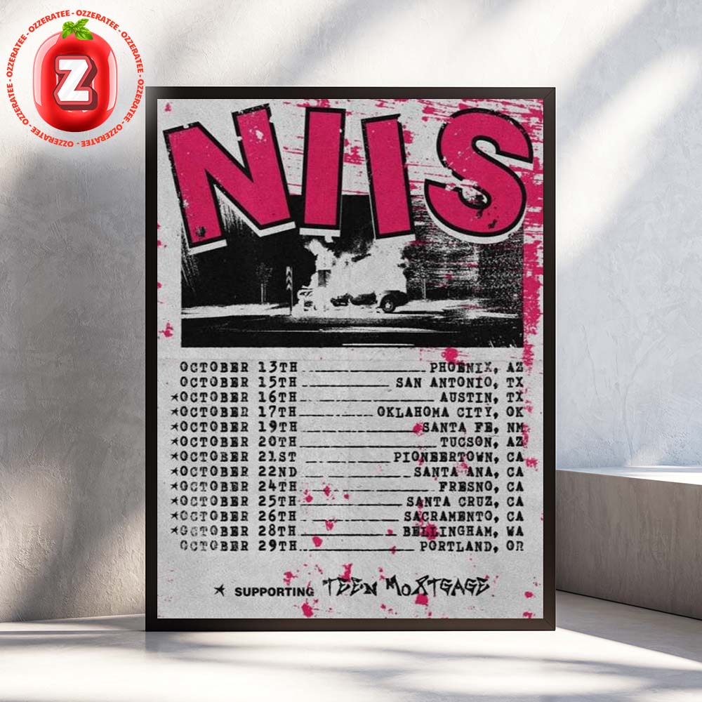 Niis Tour Dates Poster October Tour Across USA October 2025 With Teen Mortgage Home Decor Poster Canvas Features: