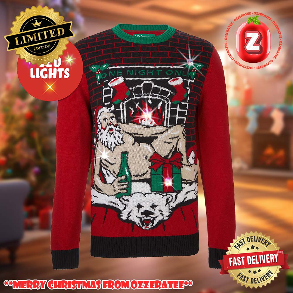 Make your holidays shine brighter than ever with the One Night Santa Claus Only LED Light-Up Ugly Christmas Sweater 2025 — because Santa’s not just delivering gifts this year, he’s bringing the party!