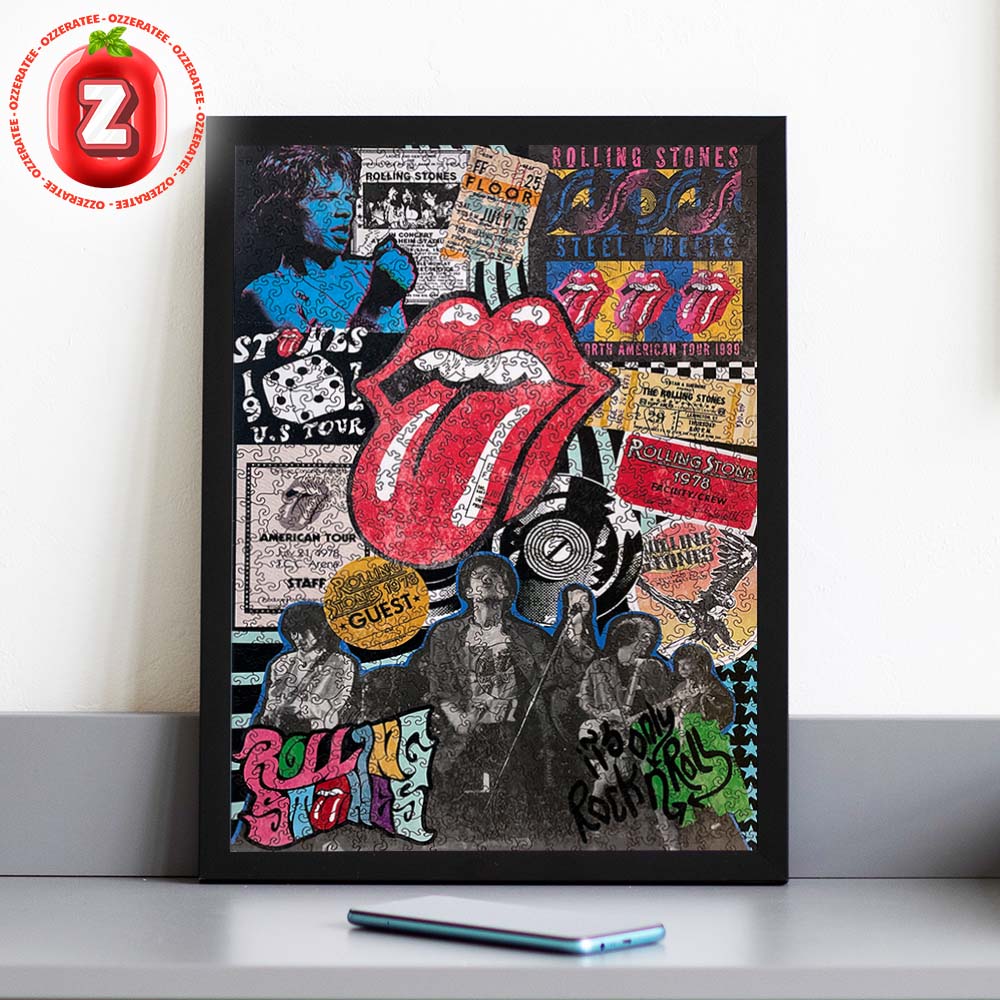 The Rolling Stones Tongue And Lips Collage Poster Retro Rock N Roll Artwork 1978 American Tour Edition Home Decor Poster Canvas