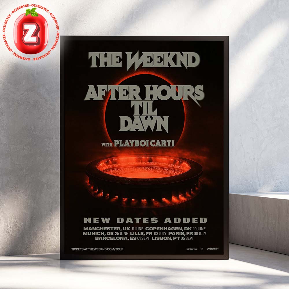 Ozzeratee: About The Weeknd Tour Poster After Hours Til Dawn Across Europe Summer 2025 Featuring Playboi Carti Red Eclipse Artwork Home Decor Poster Canvas Introduction