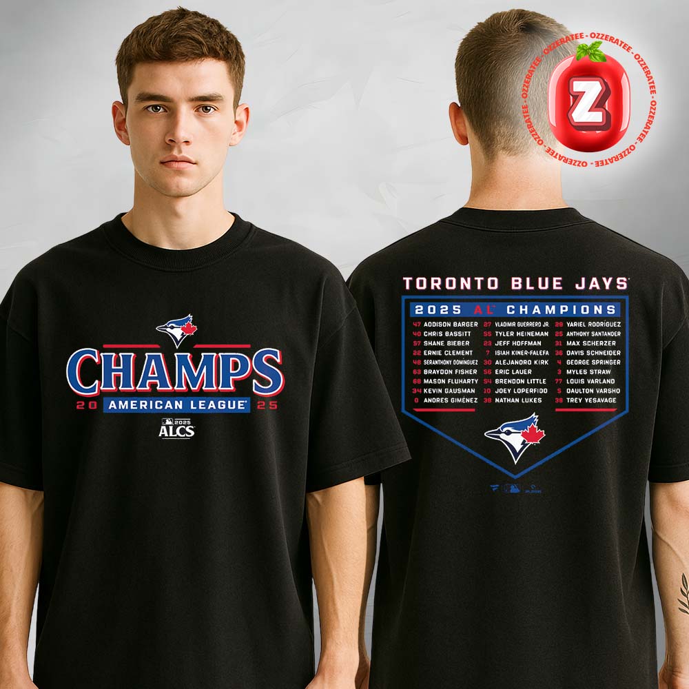 Toronto Blue Jays 2025 American League Champions Bloop Single Roster MLB Season Two Sides Unisex T-Shirt Features: